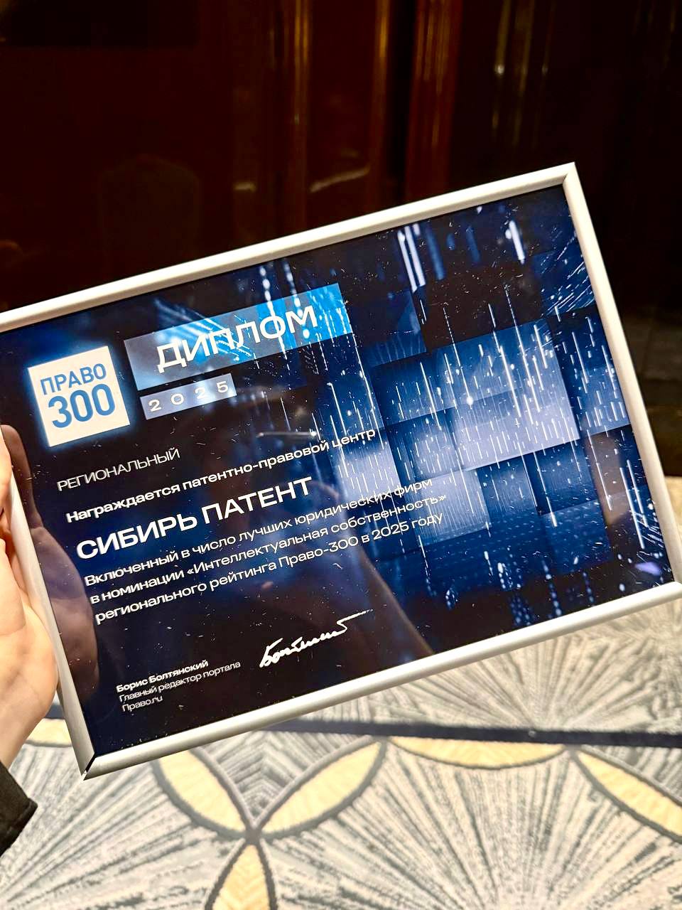 4 декабря 2025 года состоялась церемония награждения крупнейшего юридического рейтинга страны «Право 300». Команда Сибирь Патент заняла почетное первое место в направлении «Интеллектуальная собственность». Второй год подряд не сдаем позиции